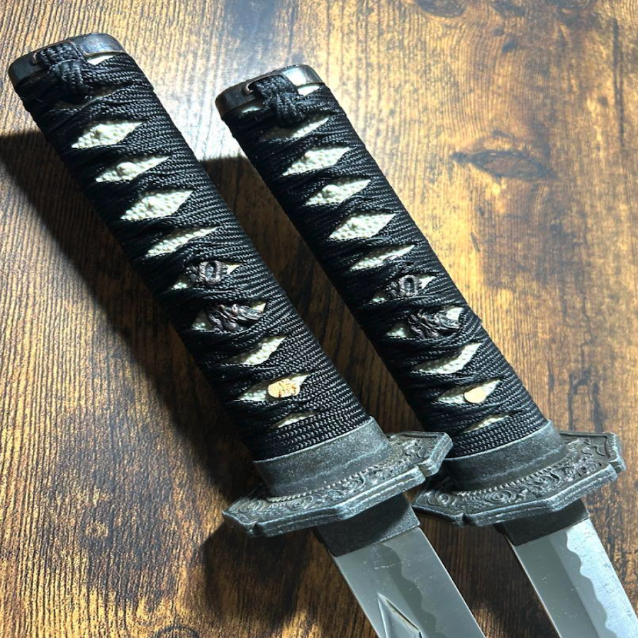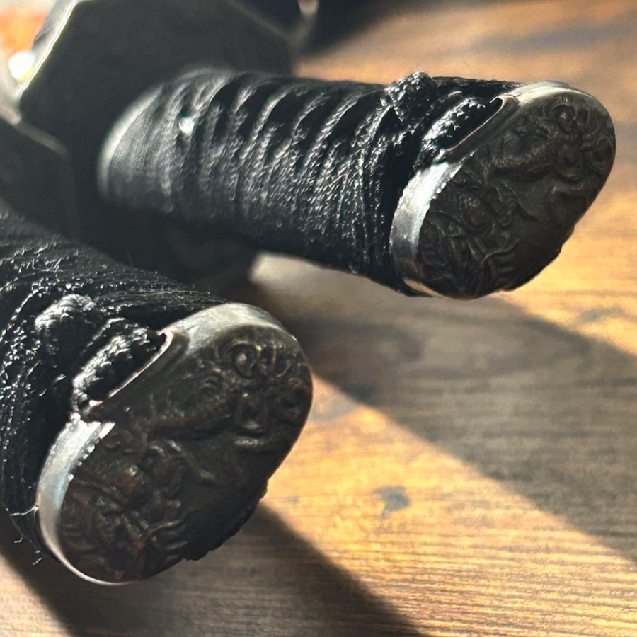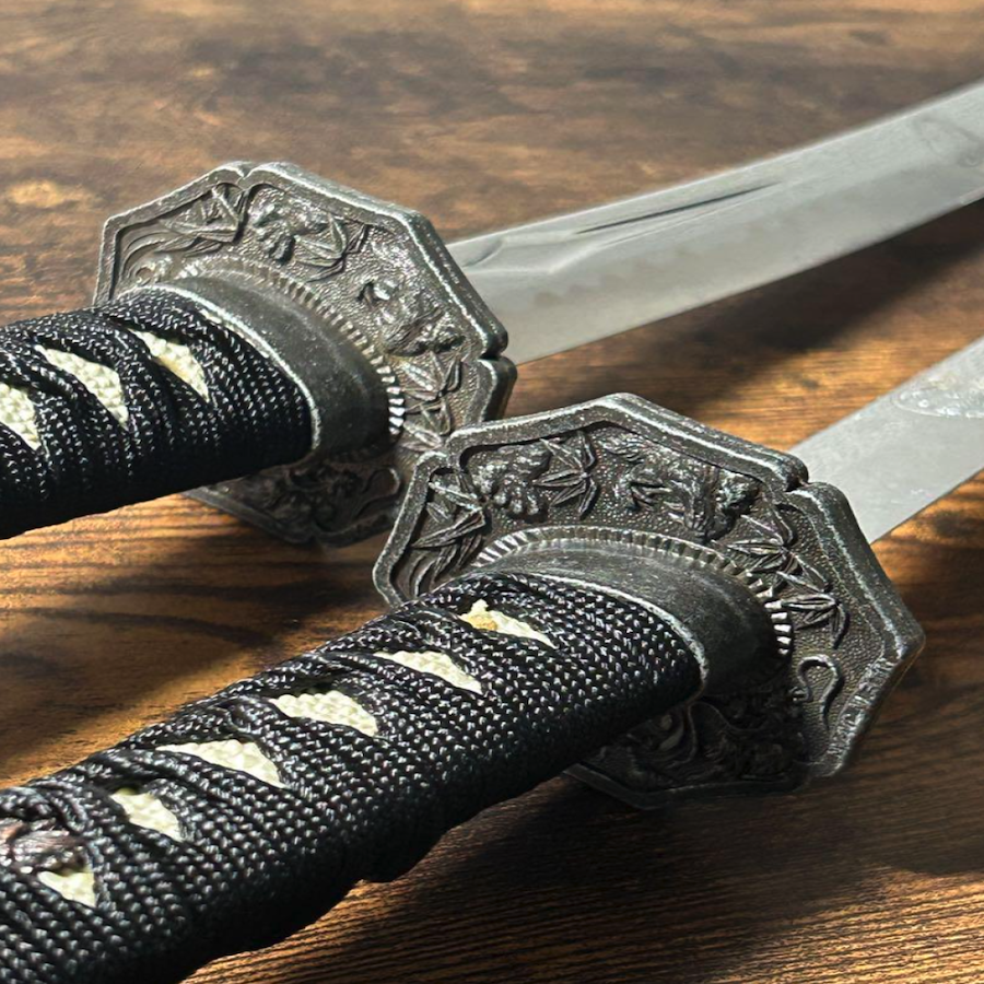 Approximate Dimensions (Overall Length / Weight):| Item | Total Length | Total Weight || :--- | :--- | :--- || Long Sword | 27.56 in (70 cm) | 1.44 lb (652 g) || Short Sword | 23.62 in (60 cm) | 1.23 lb (560 g) |