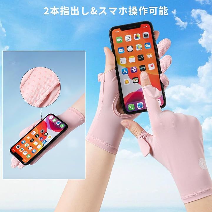そのため、紫外線防止しながら手袋を外さなくても素手でスマートフォンやタブレットのタッチパネル操作が可能。メールやSNSチェックもストレスフリー。