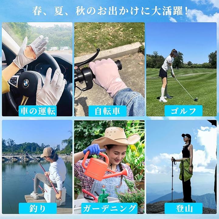 外出・ドライブ・自転車・通勤・通学・ウォーキング・登山・釣り時の紫外線防止、就寝時の保湿ケア、手荒れ対策、乾燥対策など、1年中使える手袋です。