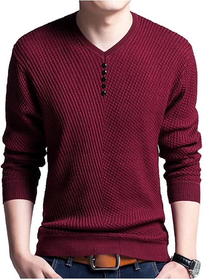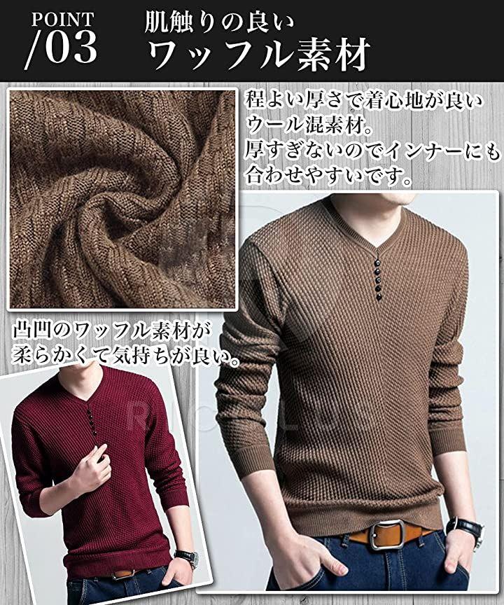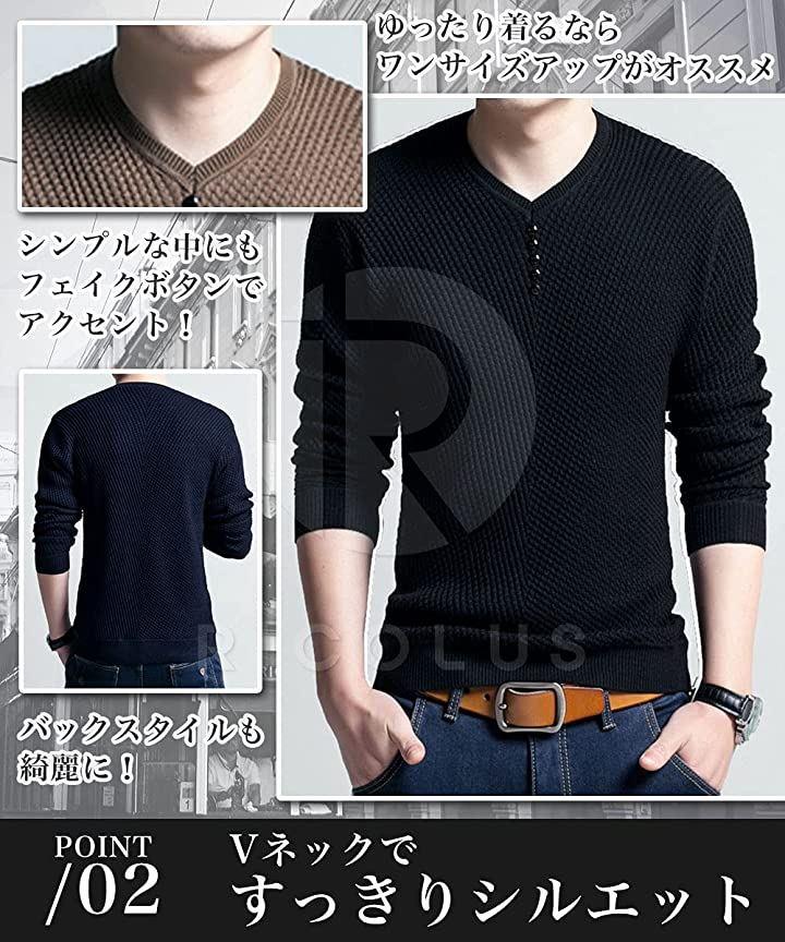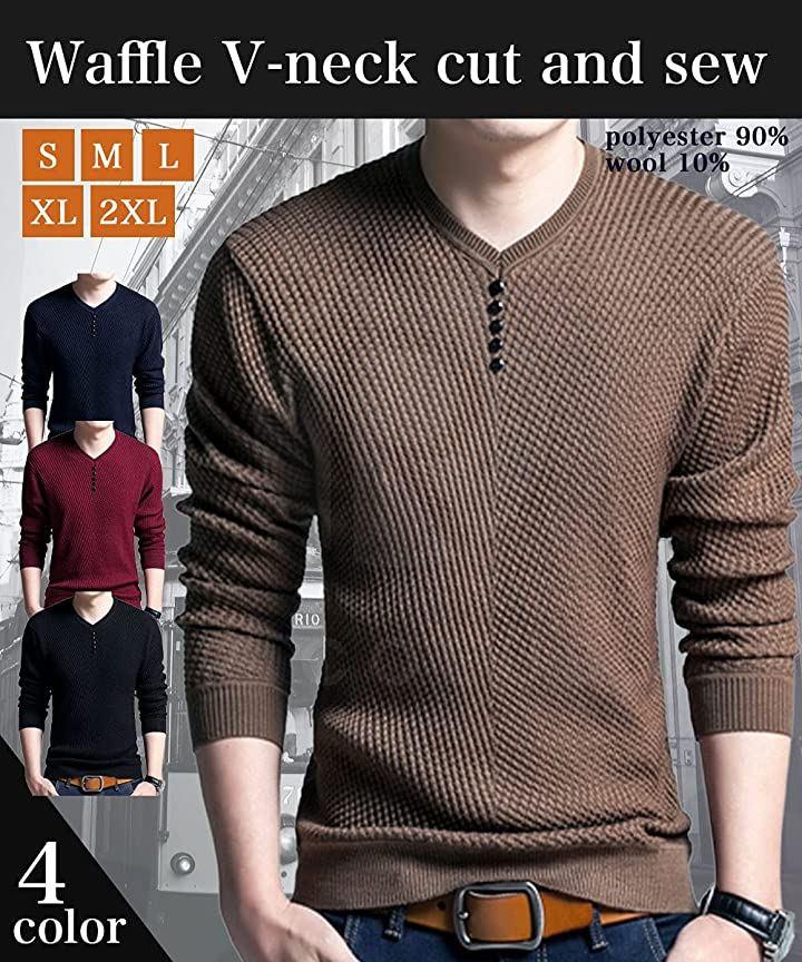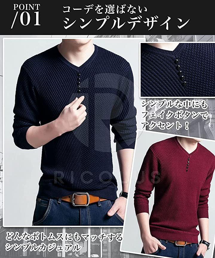 *フェイクボタンでアクセント*vネックでどんなボトムスにもマッチする、シンプルカジュアル。