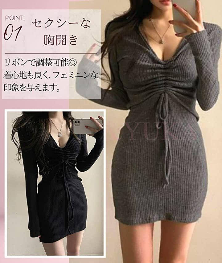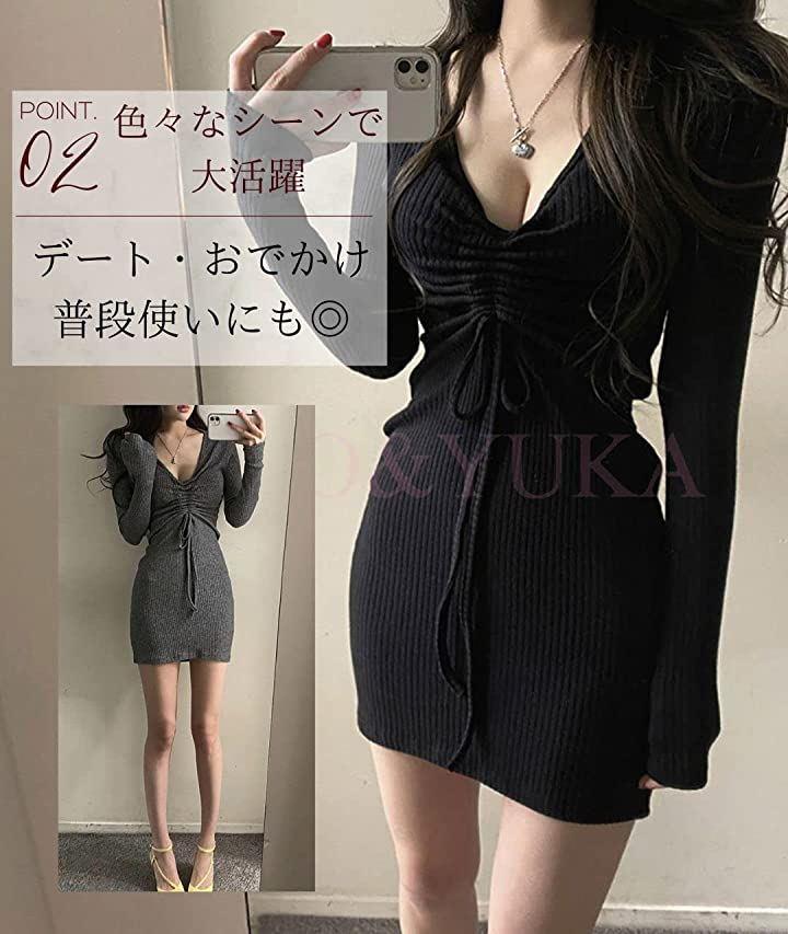 「胸元 セクシー 」女性らしさが際立つ ニットワンピース タイト で ボディコン タイプの リブニット ミニワンピ なので、体のラインを美しく引き出します。