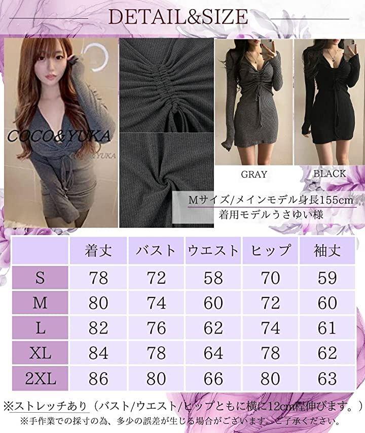 「 ブラック / グレー / ピンク / ブラウン 」( S ) 着丈78cm バスト72cm ウエスト58cm ヒップ70cm 袖丈59cm ( M ) 着丈80cm バスト74cm ウエスト60cm ヒップ72cm 袖丈60cm ( L ) 着丈82cm バスト76cm ウエスト62cm ヒップ74cm 袖丈61cm ( XL ) 着丈83cm バスト78cm ウエスト64cm ヒップ78cm 袖丈62cm ( 2XL ) 着丈86cm バスト80cm ウエスト66cm ヒップ80cm 袖丈63cm* ストレッチ あり/ バスト・ウエスト・ヒップは12cmほど横に伸縮性がございます。