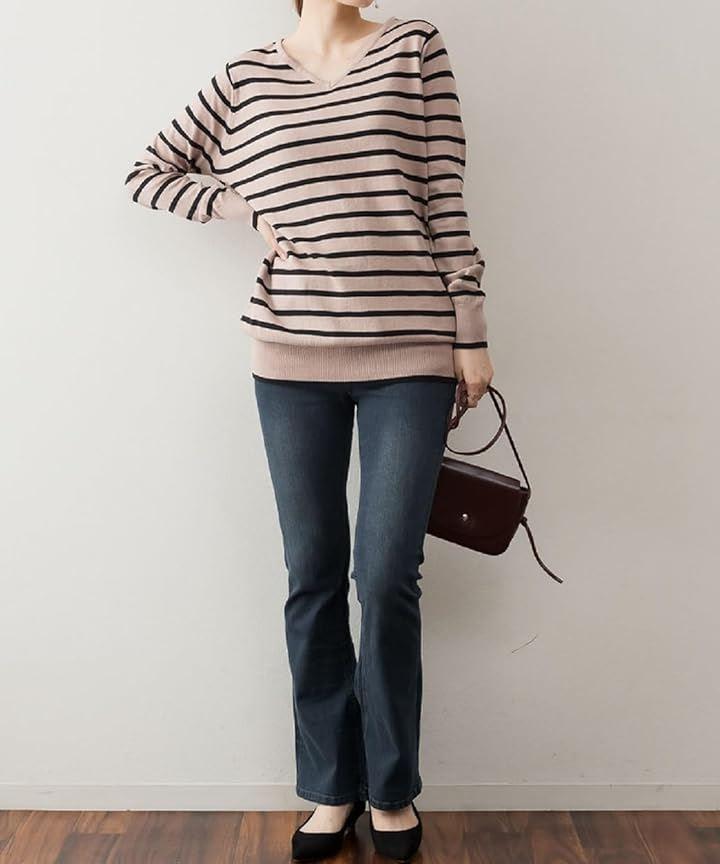 カジュアル過ぎないデザインのボーダー柄でオフィスカジュアルにもぴったりで色々着回しOK。