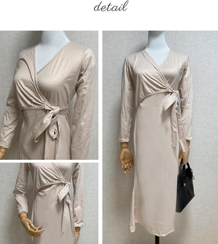 「優雅でセクシーな印象に」カシュクールの深めVネックはデコルテをきれいに見せ、女性らしい華奢な印象を演出します。