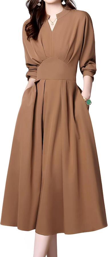 Aラインのシルエットが歩くたびにふわりと揺れ、上品かつフェミニンな印象に。