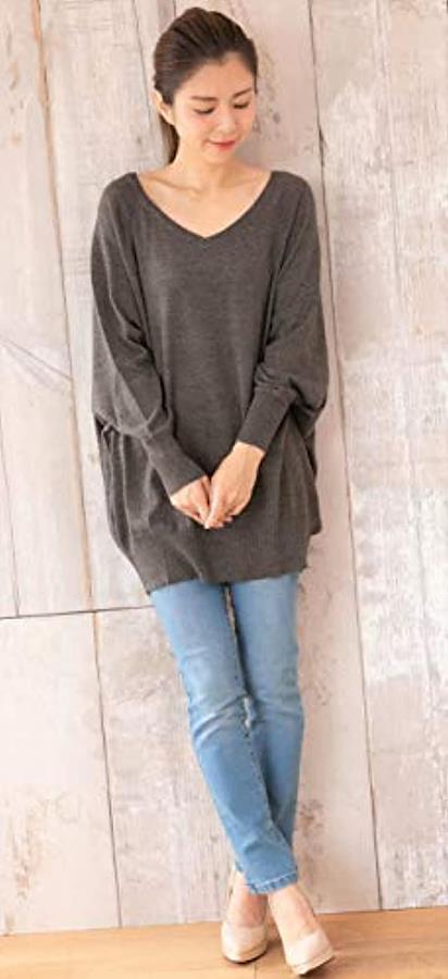 程よく開いたVネックと、ふわりと広がるドルマン・シルエットが、リラックス感がありながらもフェミニンで女性らしく、ヘビロテ・アイテムとして活躍します。