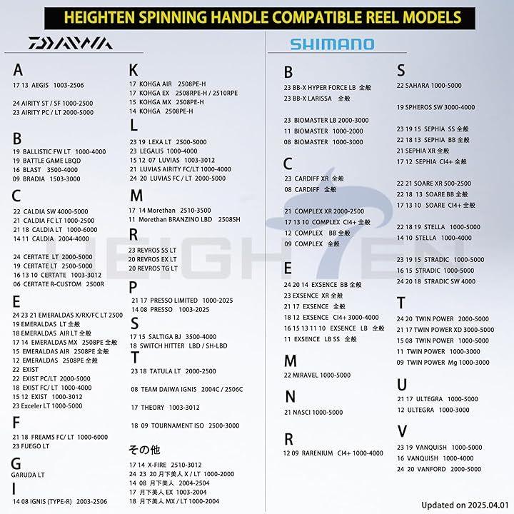 SHIMANO、DAIWAのスピニングリールハンドルに適用。
