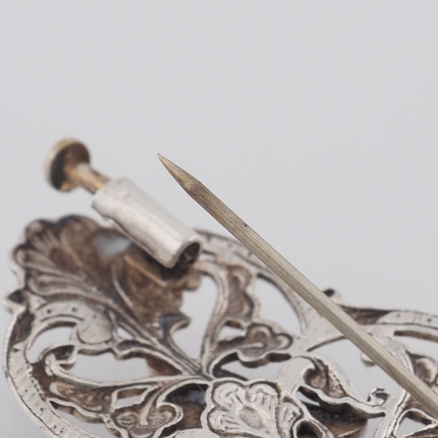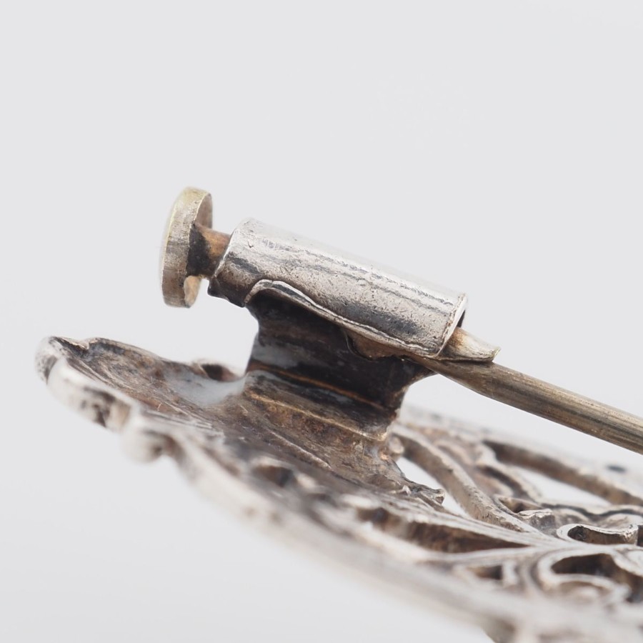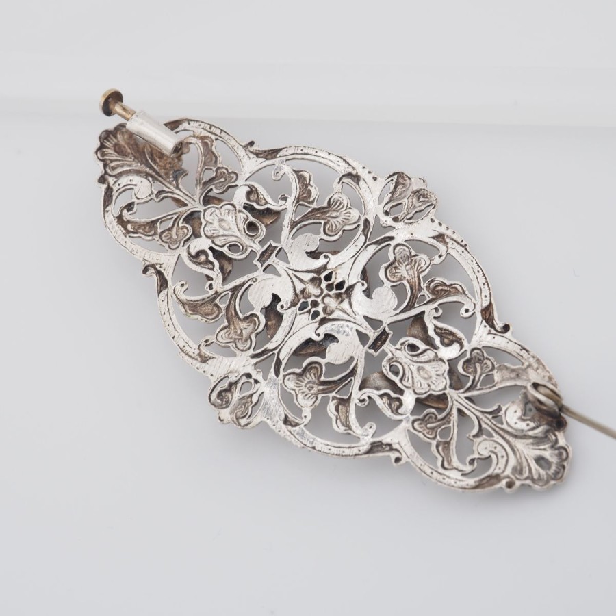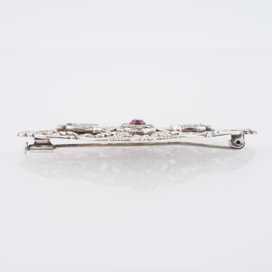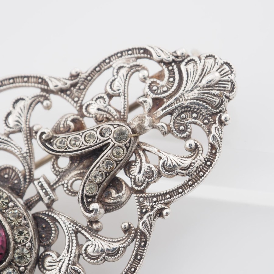 V532 Amethyst-like Diamond-like Brooch, Openwork Design, Silver Color, Vintage