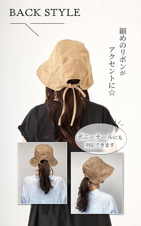 「ポニーテールができる」従来のハットでは、ヘアスタイルが乱れることがありましたが、後ろで結んだポニーテールやバンドを通すことで、髪型を崩すことなくハットを着用できます。