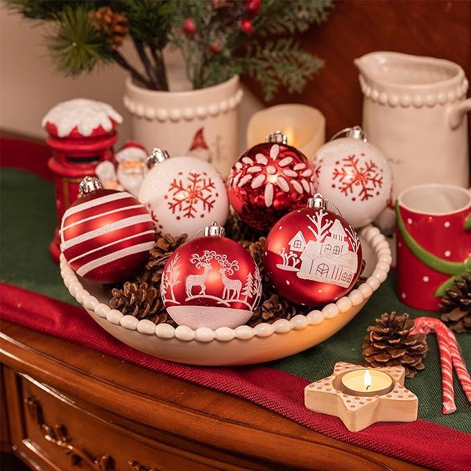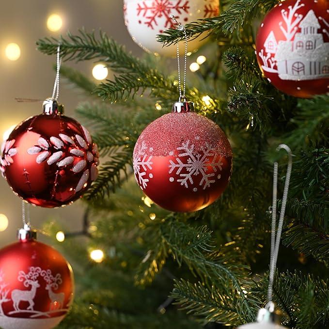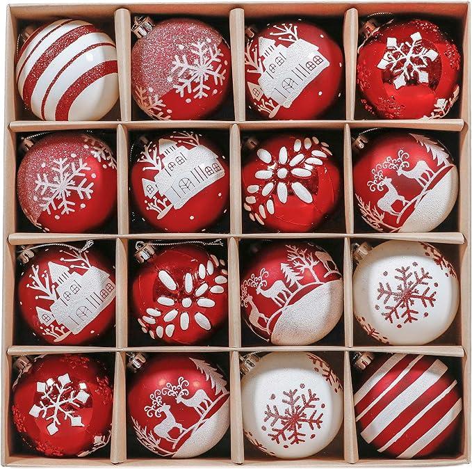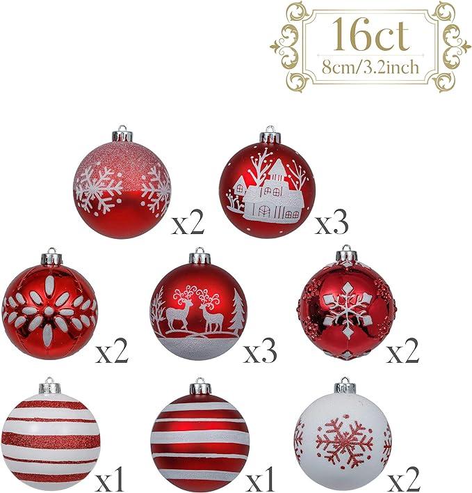 ■商品名Valery Madelyn クリスマス オーナメント クリスマスボール 赤白色 8cm 16個 セット クリスマスツリー おしゃれ レッド ホワイト 飾り付け デコレーション 装飾品