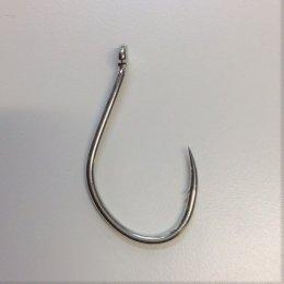 大型青物の強烈な引きにも耐えうるタフさを備えたミディアムヘビーワイヤージギングフック。ロングテーパーかつカーブ形状の鈎先は魚の硬い上顎でも瞬時に貫きます。フッキング後は深いフトコロフォルムと鈎穴の広がりを抑える丸軸設計で、非常にバレにくいのも特徴です。アシストフックを作成しやすい管付(軽量スモールアイ)タイプ。