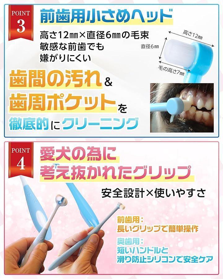 「犬用歯ブラシセット」小型犬、中型犬は前歯は小さく、奥歯は前歯の5倍以上。