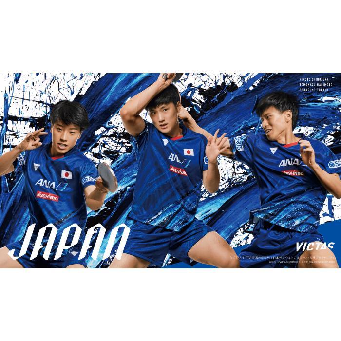 2024年度男子日本代表モデル。世界で活躍する現代アーティスト「山口歴」氏とのコラボウエア。VICTASのために描き起こした「山口歴」氏のダイナミックなグラフィックを組み込んだデザインとなっているゲームシャツです。