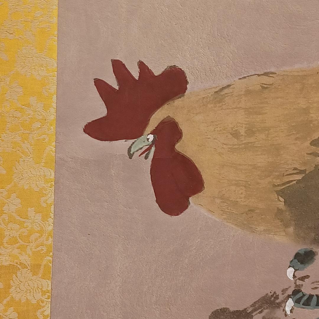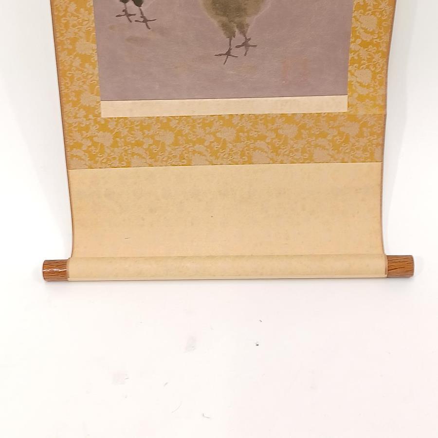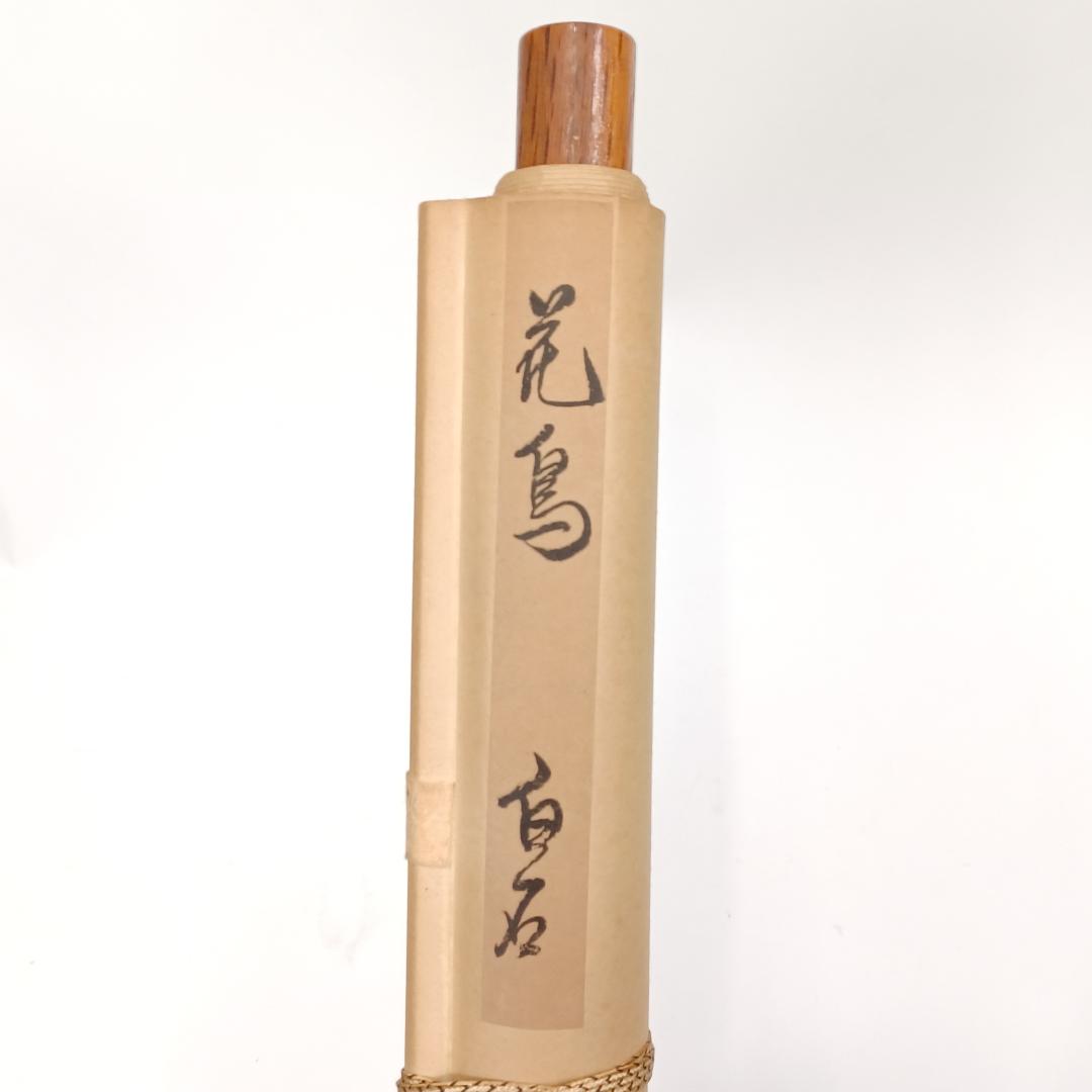 This is a beautiful used Japanese hanging scroll, known as a "Kakemono." It features a detailed Kachou-ga (flower and bird painting), a classic subject in Japanese art that symbolizes the beauty of the natural world. This exquisite piece, signed by the artist Shiraishi, captures a moment of serene nature with delicate and vibrant colors.