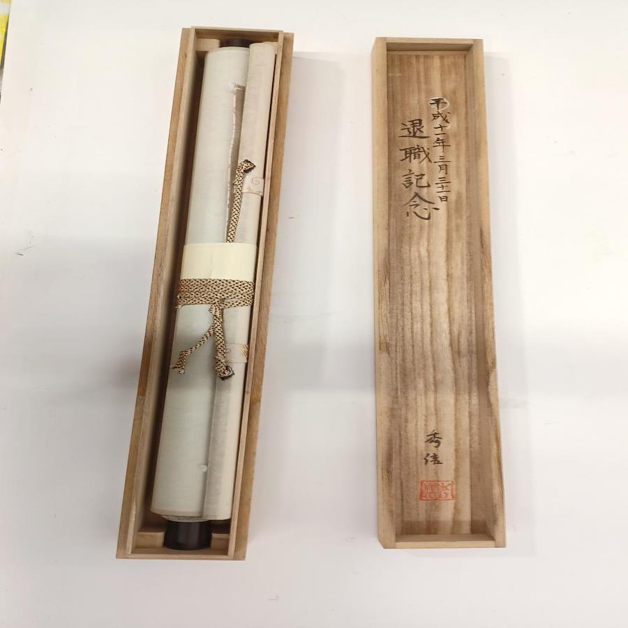 The scroll itself is an authentic vintage item, and its age adds to its rustic and classic charm. As a used item, it may show signs of its history, including minor discoloration, light creases, or some damage, which are considered part of its unique character.