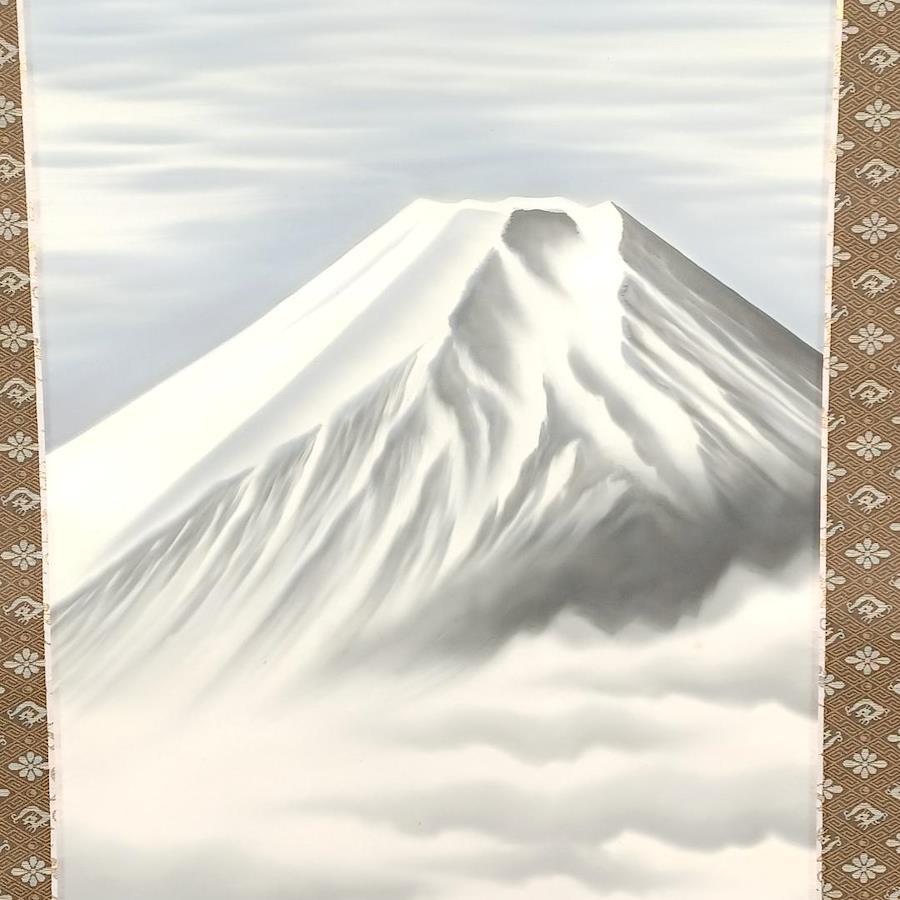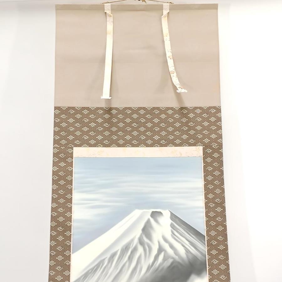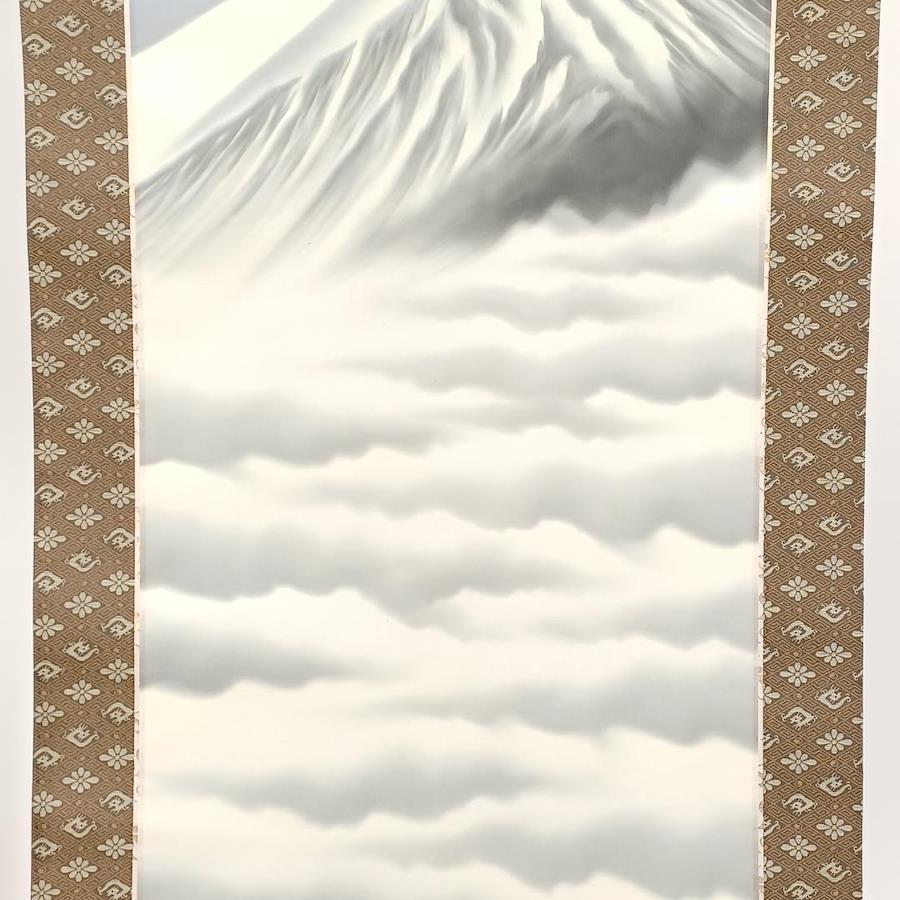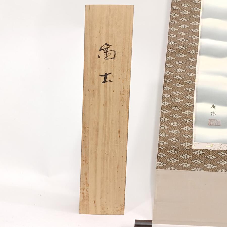 This is a beautiful used Japanese hanging scroll, or "Kakemono," featuring the iconic and revered Mount Fuji. This exquisite piece of art, signed by the artist Mori Hidenobu, captures the timeless beauty of Japan's most famous peak. In Japanese culture, Mt. Fuji is a symbol of good fortune and national identity, making this scroll a truly meaningful addition to any space.
