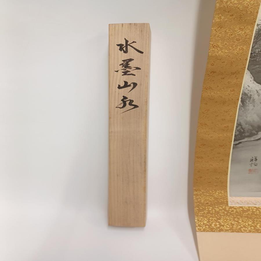 This is a beautiful used Japanese hanging scroll, known as a "Kakemono." It features a serene Sumi-e (ink wash) painting of a traditional Japanese landscape, signed by the artist Shiota Shoko. This piece embodies the simple elegance and deep spiritual beauty of Japanese ink art.