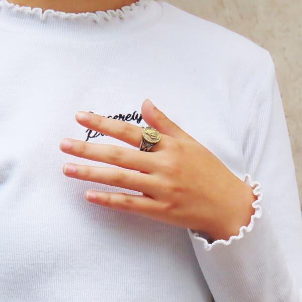 【モチーフ】 聖母マリア、マリア、クロス、十字架 ◆モチーフ意味 聖母マリアのメダイは持つ人に奇跡の恵みがもたらされると言われています。 十字架といえばイエス・キリスト。 イエス・キリストは、人類を罪から救うため、十字架に磔刑に処されたといわれています。 そのため、十字架はキリスト教における救いのシンボルであり、特別な意味を持つ尊重されるべきしるしでもあるのです。 このような背景があるため、クロスは愛、救い、永遠、解放、生命力、復活など、多様な意味を持ちます。 また、クロスには守護の要素が強く、魔除けの効果があり、天からの加護や災いを跳ね返してくれる力が高まるともいわれています。 ◆商品名 聖母マリアリング(RNG-56) ◆素材 シルバー925 スターリングシルバー × 真鍮 ブラス ◆リング幅 最大15mm、最小5.5mm ◆ストーン 直径2.0mm 下記の中からお好みの天然石・誕生石をお付け致します。 ・ガーネット ・ロードライトガーネット ・アメジスト ・アクアマリン ・ブラックダイヤモンド ・エメラルド ・ブルームーンストーン ・ルビー ・ペリドット ・サファイア ・アイオライト ・ピンクトルマリン ・シトリン ・ブルートパーズ ・タンザナイト ・オニキス ・ラピスラズリ ・ターコイズ ◆リングサイズ 5号~20号 ◆付属品 ジュエリーBOX、ショップ袋、品質保証書 *プレゼント梱包出来ます ◆実店舗 Grand Galleria(グランドガレリア) JR帯広駅より徒歩5分の場所にある2012年オープンのフラッグシップショップ。 ジュエリー工房を併設し、常駐する職人自らと打ち合わせも可能なため、修理や加工、お客様のご希望に沿ったジュエリーもお作りすることが可能です。 ◆オススメ使用シーン ・様々な贈り物に プレゼント 贈り物 誕生日 誕プレ 誕生日プレゼント バースデー バースデイ 御祝 御祝い お祝い 母の日 父の日 クリスマス クリスマスプレゼント Xmas 春夏秋冬 成人 成人式 卒業 卒業式 進学 就職 入学 金婚式 銀婚式 出産 結婚 開店 開業 定年退職 退職 移動 転勤 バレンタイン バレンタインデー バレンタインデイホワイトデー ホワイトデイ ごほうび ご褒美 御褒美 ・想いを込めて ありがとう 感謝 ごめんなさい 許して ごめんね よろしく おめでとう おめでとうございます 仲直り