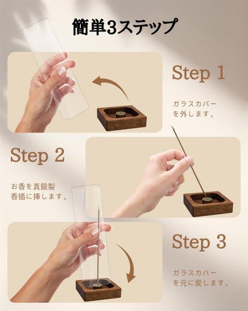 【自然素材の温もり】正方形の底座には、ぬくもりのある天然木を使用。お香立てとして、様々なインテリアに調和し、落ち着いた雰囲気を演出します。