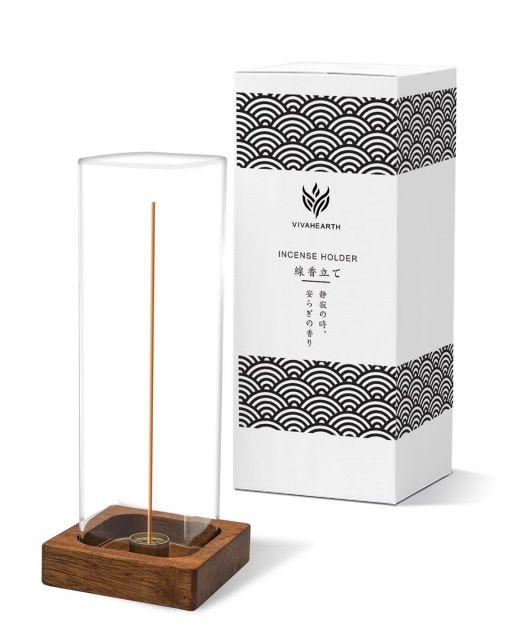 サイズ:中サイズ◆商品名:VIVAHEARTHお香立て灰がこぼれない線香立てオシャレガラス真鍮天然木ベースシンプルインテリア香炉玄関先瞑想室書斎(サペレ)