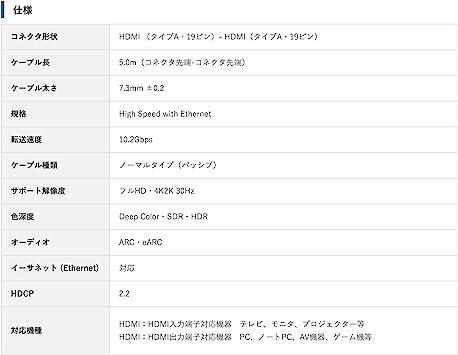 ケーブル長:5.0mコネクタ:金メッキ仕様ケーブル:3重構造【シールド】カラー:黒ケーブル/コネクタ:ノイズカット・EMI対策 シールド強化品(OEM仕様同等品)High Speed with Ethernet(1080p/3D/4×2/DeepColor/HEC/ARC 対応)