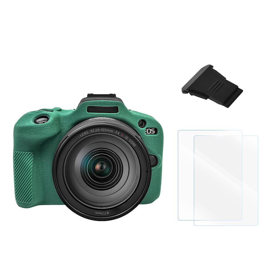 ▪EOS R100 カメラに特別に設計されたシリコンケース*1個+強化ガラス保護フィルム*2枚+ホットシューカバー*1個のセットです。(ほかのカメラには対応できません。)▪カラー:ブラック、ホワイト、ピンク、グリーン▪材質:シリコン、ガラス、プラスチック
