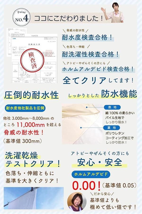 「日本の検査機関で多くのテストをクリア」 防水シーツに必要な多くの基準をクリアしています。