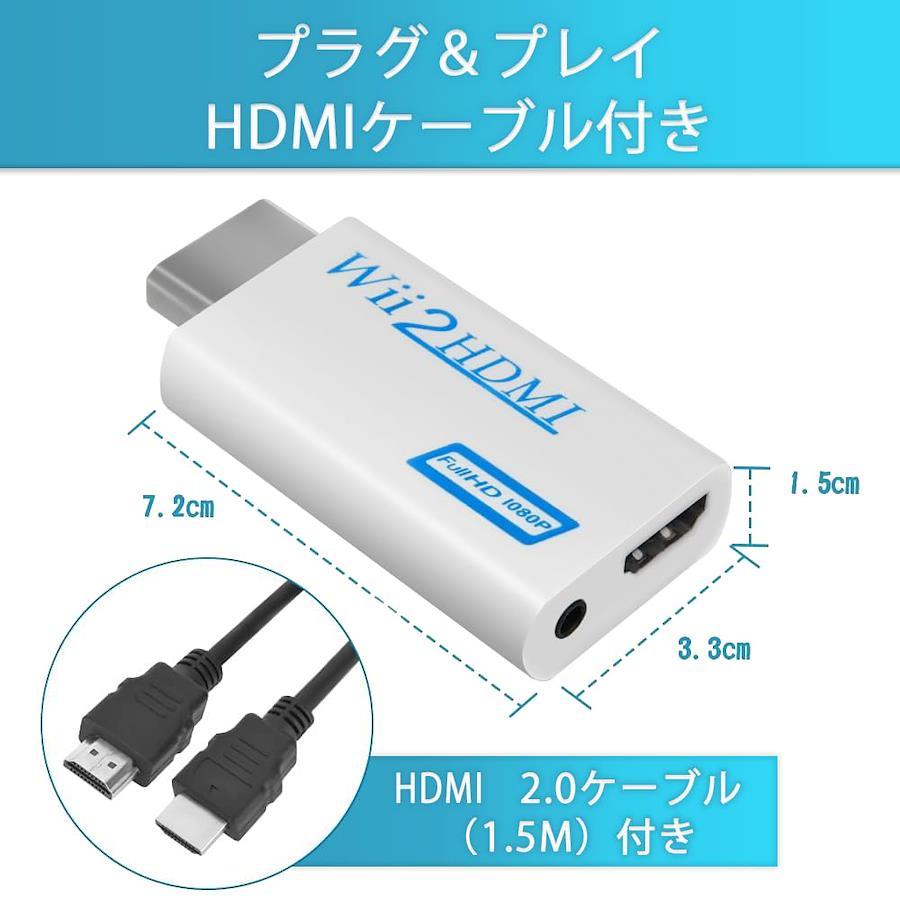 【Wii2HDMI】This product is an adapter that converts the Wii signal of Nintendo game consoles to HDMI. This is a Wii to HDMI converter adapter. With this product, you can easily play Wii games on HD monitors. All analog standards (screen and sound) output, so there is no wear of transfer. In addition, it can also be used on TV as well as PC monitors and projectors. Plug and play, no power adapter needed. Connection was very simple. The main unit is small and easy to install and very convenient. The entire body has a black design for a luxurious look 【Wide Versatility】Compatible with all Wii display modes (NTSC 480i 480p, PAL 576i). Equipped with 3.5mm audio output port, all analog audio output, zero sound noise. It can be used with external stereo and it is easy to use even with monitors without a stereo. Transmits the screen and sound simultaneously, so there is no problem with sound loss or cracking 【Standard】Size: 1.3 x 2.9 x 0.6 inches (34 x 73 x 14 mm); Weight: 15g Power consumption less than 2W Video input: Wii console on all monitor motors (480i, 480p, 576i); HDMI output: 720P@60Hz, 1080P@60Hz Input connection: Wii AV port *1 3.5mm stereo port x 1 High Definition Screen: The HDMI output supports 720p and 1080p high resolution screen. Video processing technology processes video signals to improve screen accuracy, color saturation, analysis, and more to reduce signal loss. No delay, more quickly and stable signal transmission. All analog standards (screen and sound) output, so there is no wear of transfer Service: We have absolute confidence in our products. If you have any questions, please feel free to email us. We offer a 30-day refund or return policy if there is an error or damaged for any reason, customer satisfaction is our goal
