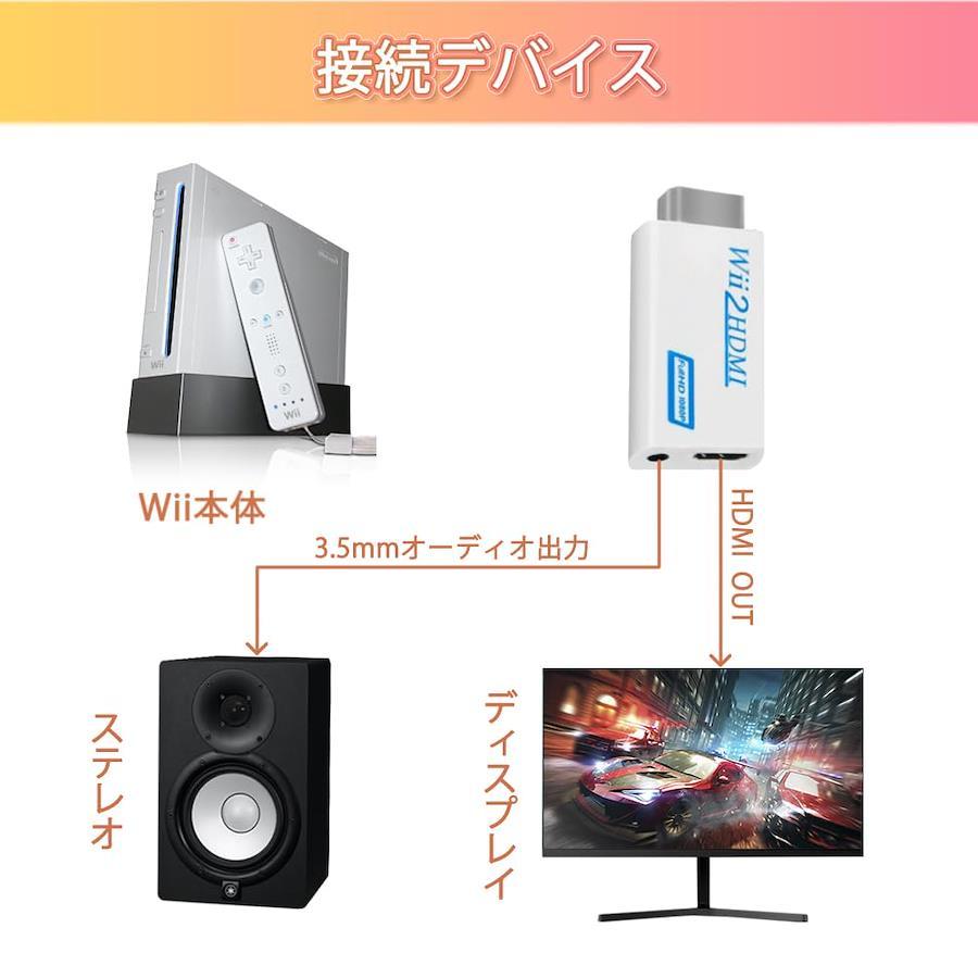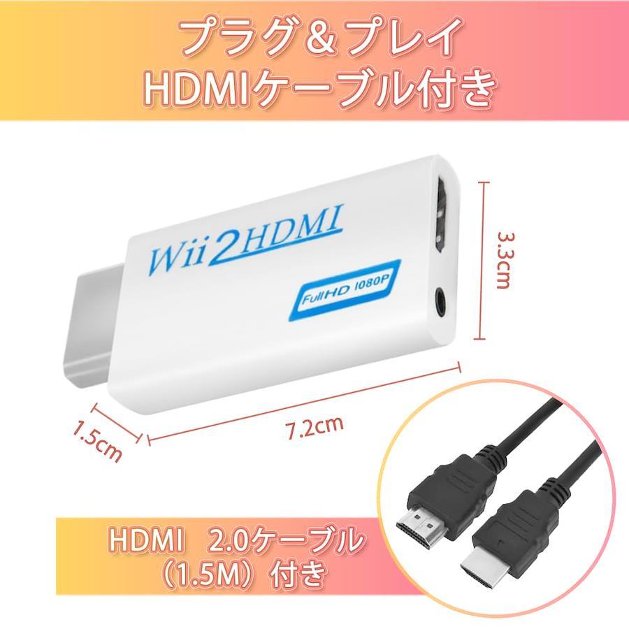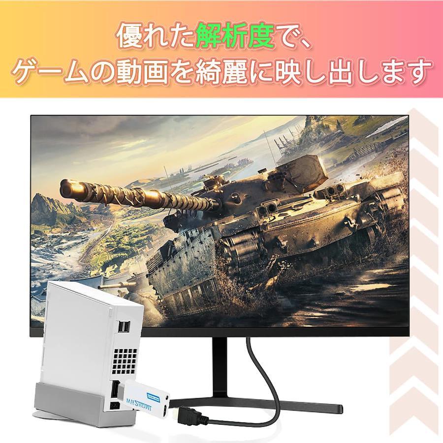 【Wii2HDMI】この商品はNintendoのゲーム機WiiのシグナルをHDMIも通用のように変換するアダプターです。即ち、Wii専用Wii To HDMI 変換アダプタです。本商品があれば、簡単にHDモニターでWiiのゲームをすることができます。全アナログ規格(画面と音)出力、転送の損耗はなし!また、テレビだけでなく、PCモニタ、プロジェクタでも高画質で出力!プラグ&プレイで電源アダプターは必要ありません。 接続はとても簡単でした 。本体は小さくて簡単に取り付けが出来てとても便利。全身ホワイトのデザインで高級感がでます。 【広い汎用性】すべてのWiiディスプレイモード(NTSC 480i 480p, PAL 576i)に対応。3.5mmオーディオ出力ポート搭載、全アナログオーディオ出力、音のノイズはゼロです。外接ステレオは可能で、ステレオがないモニターでも楽に使用出来ます。画面、音同時に転送し、音ズレやカクカクなる等の問題は一切なりません。 【高画質画面】HDMI出力は720pと1080pの高画質画面を支持します。ビデオ処理技術で動画シグナルを処理し、画面精度や彩度、解析度等を向上し、信号損失を抑えます。遅延なし、より迅速かつ安定な信号伝送できます。全アナログ規格(画面と音)出力、転送の損耗はなし! 【規格】サイズ:34 x 73 x 14mm 重さ:15g 電力消耗2W以下 ビデオ入力:全てのモニターモートのWiiコンソール(480i, 480p, 576i) HDMI出力:720P@60Hz,1080P@60Hz 入力接続:Wii AVポート*1 出力接続:HDMIポート*1 。 3.5mmステレオポート*1。1.5Mの高品質のHDMIケーブル付きで、他のどこかで買う必要なし。 【サービス】弊社は製品に絶対の自信を持っています。何かご不明がございましたら、どうぞお気軽にメールで私にお問い合わせてください。もし何らかの理由でうまく機能しない、エラーがあり、または破損した場合、30日間の払い戻し、または返品の保証を提供します、顧客の満足度は私たちの目標です。
