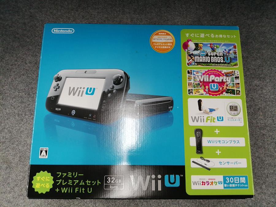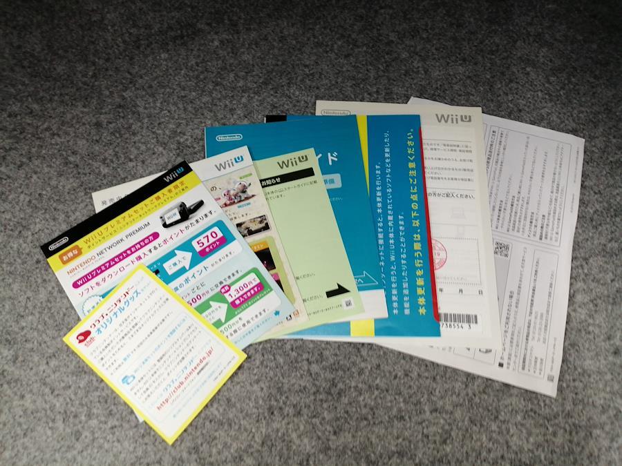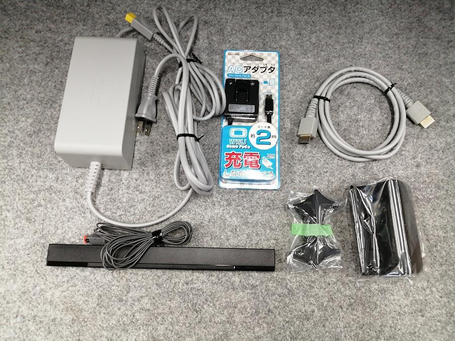 ■付属品化粧箱、取扱説明書、WiiUパッド、電源ケーブル、WiiUパッド充電ケーブル(社外製)、HDMIケーブル、センサーバー、スタンド