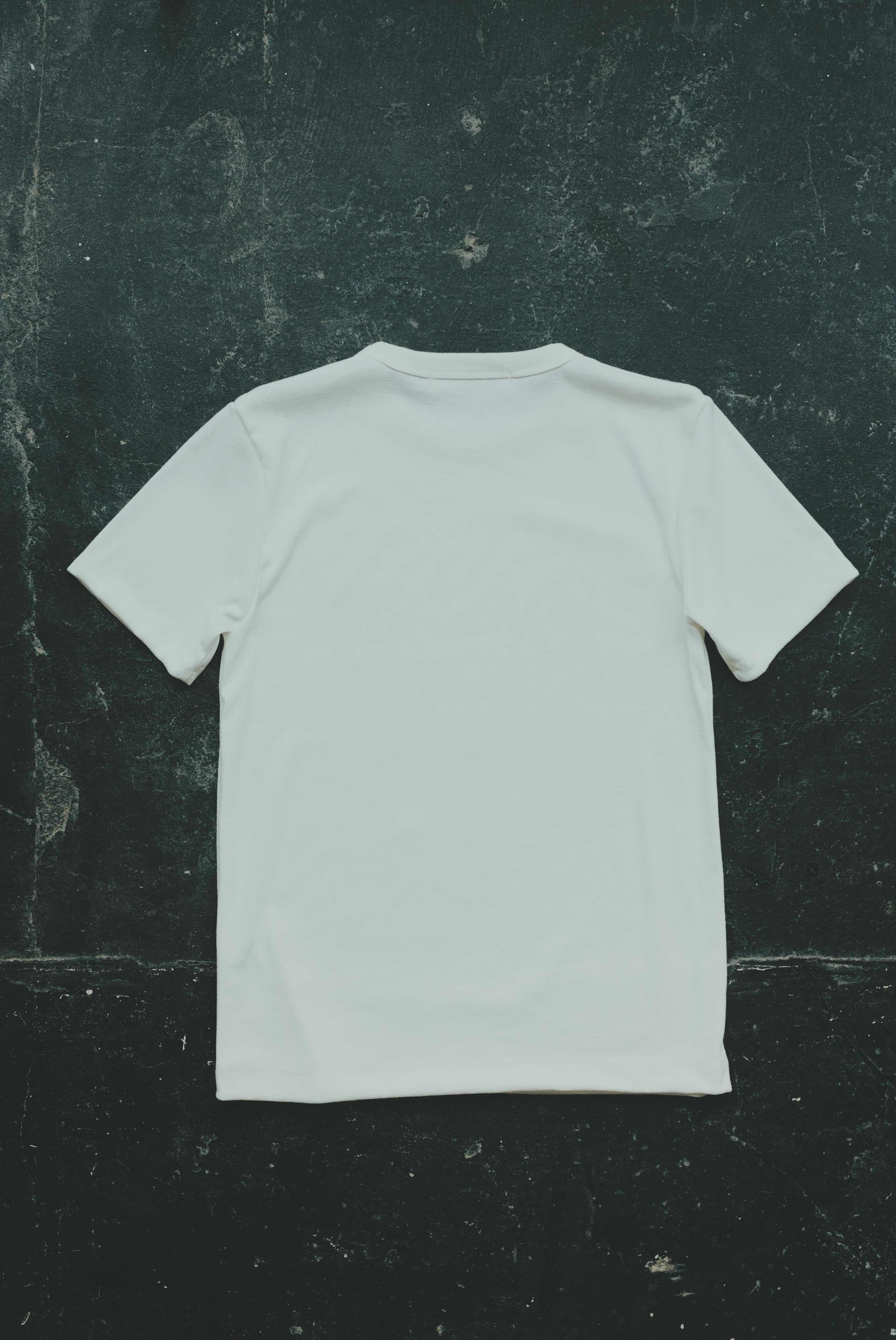 カジュアルなロゴ T を上質なとろみのある素材で仕上げました。今回も 1 から型をおこして頂き、どの角度から見ても綺麗なシルエットになるようにこだわっています。コンパクトなサイズ感と、少しラフなサイズ感の 2 サイズでご用意しています。