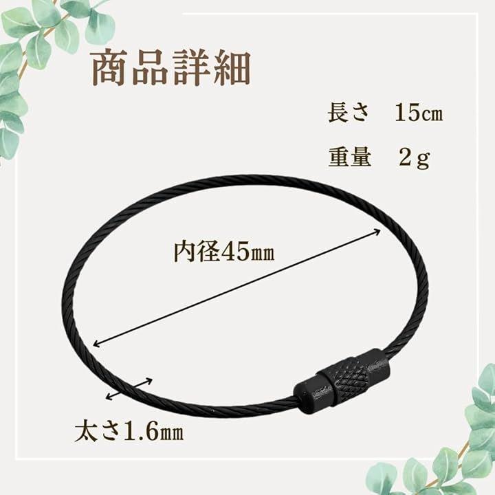 「着脱簡単」ねじ式ワイヤーキーリングは、簡単に着脱できる便利な仕様で、鍵やアクセサリーをしっかり固定します。