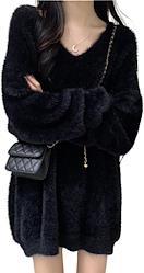 ドロップショルダー ニット Vネック ワンピース ミニ ふわふわ フリーサイズ ゆったり オフショル 韓国ファッション セーター