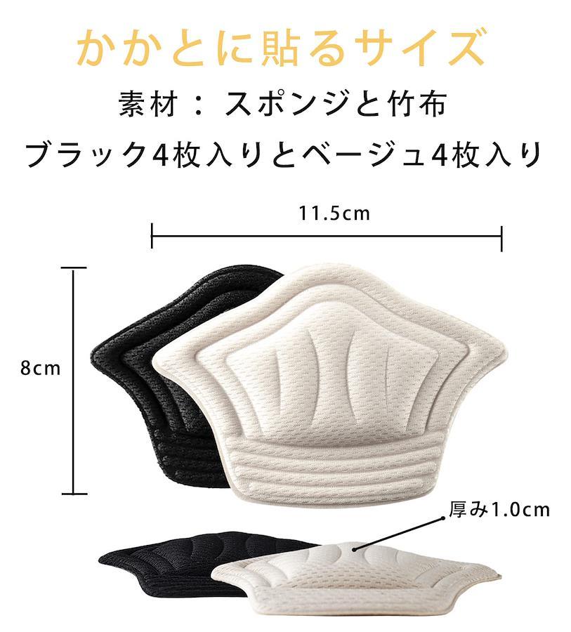 【仕様】「WOMLEX」製のかかと素材 : スポンジ、竹布。サイズ 約: 長さ11.5cm × 幅8cm x 厚い5mm/10mm。2足/4足ブラックセット(合計4枚/8枚) 【靴擦れとパカパカ防止】あなたはまだ新しい靴について心配していますが、サイズと摩擦について心配していますか? 「WOMLEX」製のかかと、これらの問題を解決し、快適に靴を履くことができます♪ 【高品質素材】「WOMLEX」製のかかとクッション性に優れ、柔らかく着心地も抜群! 高品質のメモリーフォームを使用して、かかとパッドの柔軟性を確保しながら、足のサポートと耐久性を強化します。 長時間使用しても変形せず、滑り止め効果に優れ、かかとの不快感を効果的に和らげることができます。 【DIYクリッピング】「WOMLEX」製のかかと靴のサイズに合わせて形を変えて、さまざまな靴のニーズに合わせることができます。 お気に入りのスポーツシューズが破損する心配がなく、スポーツシューズの内側の接着剤に快適にフィットします。 【靴擦れ防止 かかとパッド】長時間働く方、ハイヒール、スニーカー、ハイヒールを履く方に適しています。 これらのトラブルを抱えて予防している方へのおすすめであり、ギフトとしてもお勧めです。