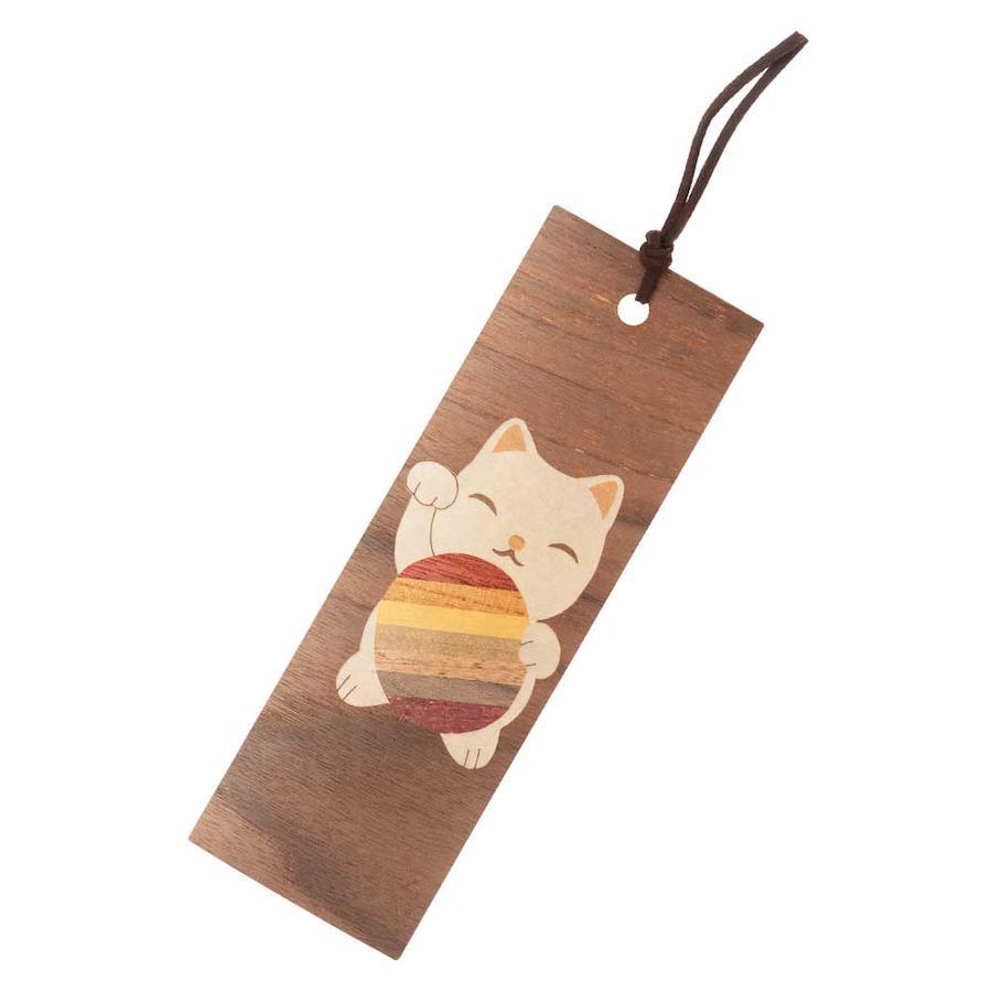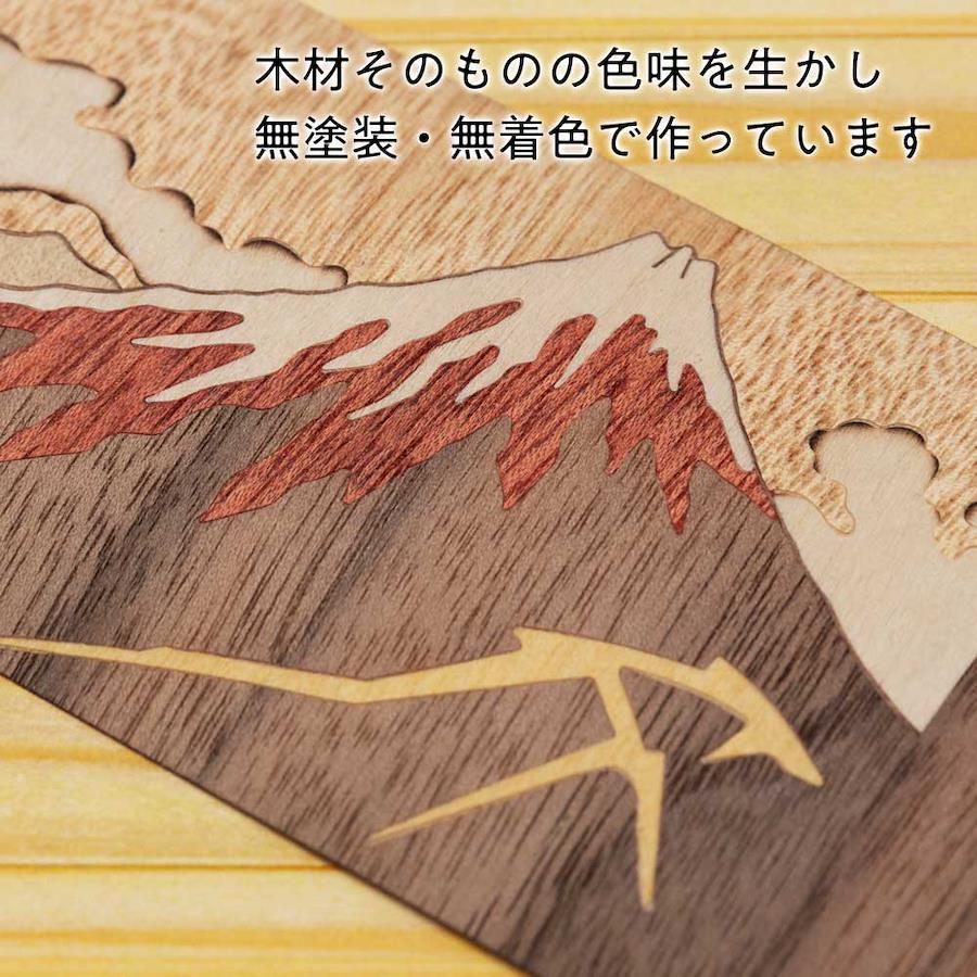 塗装ではなく、色味の違う天然木の組み合わせによって絵柄を表現した、木象嵌(もくぞうがん)のしおりです。