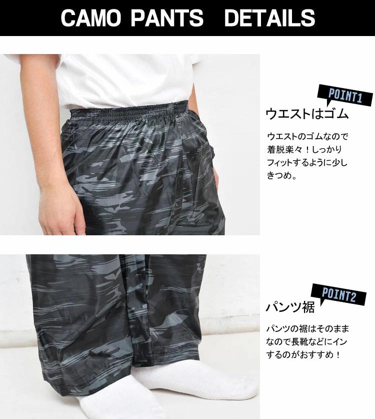 作業中の泥・風・汚れから体をガード。汚れやすい作業に最適な迷彩柄パンツです。
