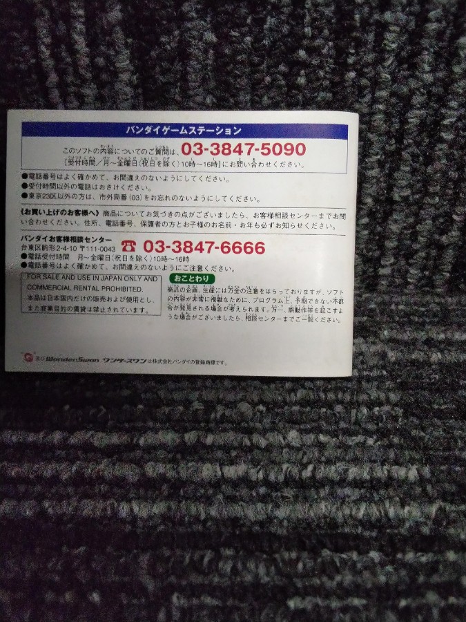 WSソフト X CARD OF FATE BANDAI ワンダースワンソフト BANDAI X CARD OF FATE WSソフト