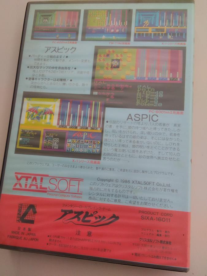 X1/TURBOソフト アスピック XTAL SOFT MSXソフト XTAL SOFTアスピックX1/TURBOソフト