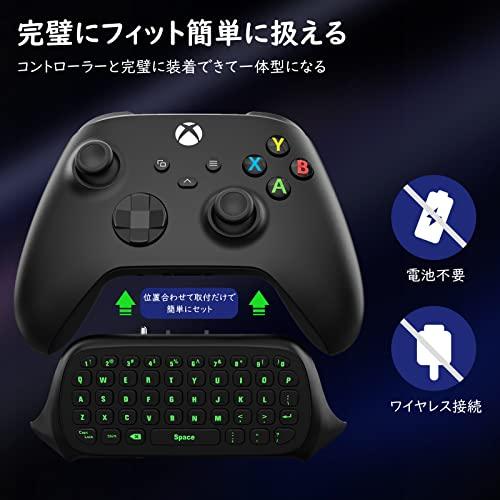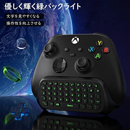 「機種適用」Xbox one/Xbox one S/Xbox one Elite/Xbox one Elite 2/Xbox Series X/Xbox Series Sのコントローラー下部の位置に合わせて取り付けるだけで簡単にセットで即利用いただけるミニキーボードとなります。収納しやすいコンパクトなサイズより、カバンに置いてもかさばらず気軽に持ち運べます。Xbox One X と他の機種に対応できませんので、ご購入前にお使いのコントローラーのモデル番号を確認してください。 「バックライト付き」 優しくライトアップさせるグリーンカラーのバックライト機能をキーボードに内蔵されてあり、暗い場所でもキーの文字も見やすくなり、操作性も向上させて、コントローラーをより目立たせて、高級感を演出してくれます。 「快適に入力」 押しやすく、迷惑なカチャカチャ音がしない柔軟性に優れたシリコン素材を採用しており、スムーズな入力が可能となり素早く応答してくれます。(ご注意:本製品は47キーUS配列のキーボードとなるため、「ー」と「-」を打つことはできません。) 「取り扱い簡単」 安定性の高い2.4Ghzレシーバーが付属しており、面倒な設定などは不要で、レシーバーをコンソールにセットしたら、簡単にペアリングできます。XBOX ONE公式イヤホン対応ジャックや通用の3.5mmオーディオジャックも設計してあり、イヤホンでゲームをよりリアルな体験に実現してくれます。 「充電は不要」 大容量バッテリー内蔵されており、コントローラーにセットすればコントローラーから供給される便利な仕様となり、別途でケーブル繋がって充電必要なく、充電切れの心配もいらずにより快適なゲーム体験をお楽しみいただけます。