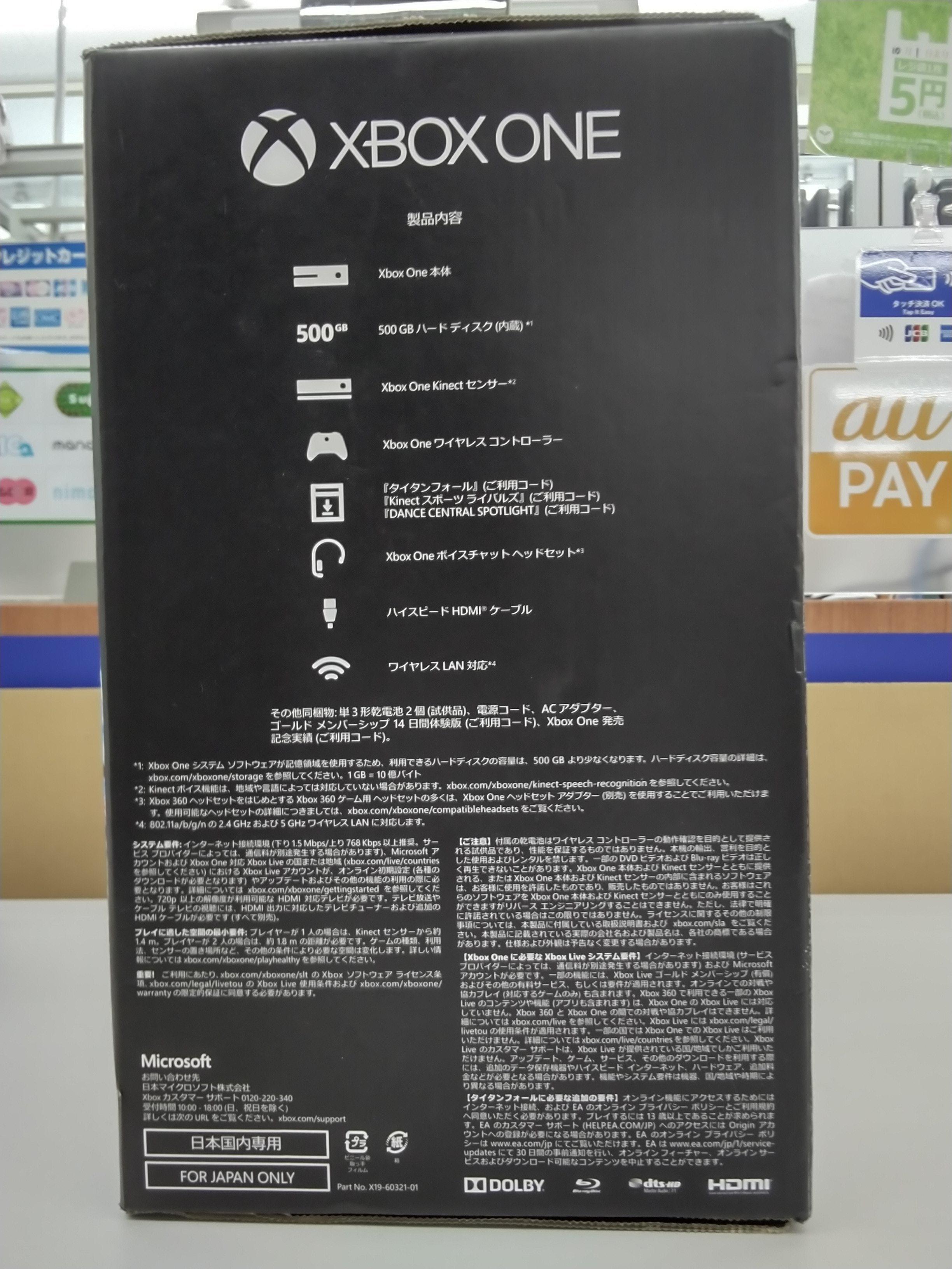 ■付属品ワイヤレスコントローラ、電源アダプター、ボイスチャットヘッドセット、HDMIケーブル、xbox one kinectセンサー