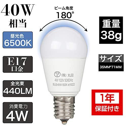 一年保証:本製品は購入日より1年保証付きです。もし問題がある場合はお気軽にご連絡ください。長寿命:長寿命約40,000時間で、1日10時間のご使用でも約10年以上取替不要、お金と手間を節約します。省エネ:口金E17 小型電球40W形相当、定格電力4Wのみ、一般白熱電球に比べて、90%の電気代を省くことができます。環境保護:水銀なし、紫外線なし、環境に優しいです。PC、アルミニウムの材質なので軽くて壊れにくくなり、地震にも安心できます。耐久性: 密閉器具&断熱材器具に対応できます。キッチン、リビングルーム、ベッドルーム、廊下の卓上ランプとフロアランプ、またはペンダント器具や天井器具などに使用可能です。