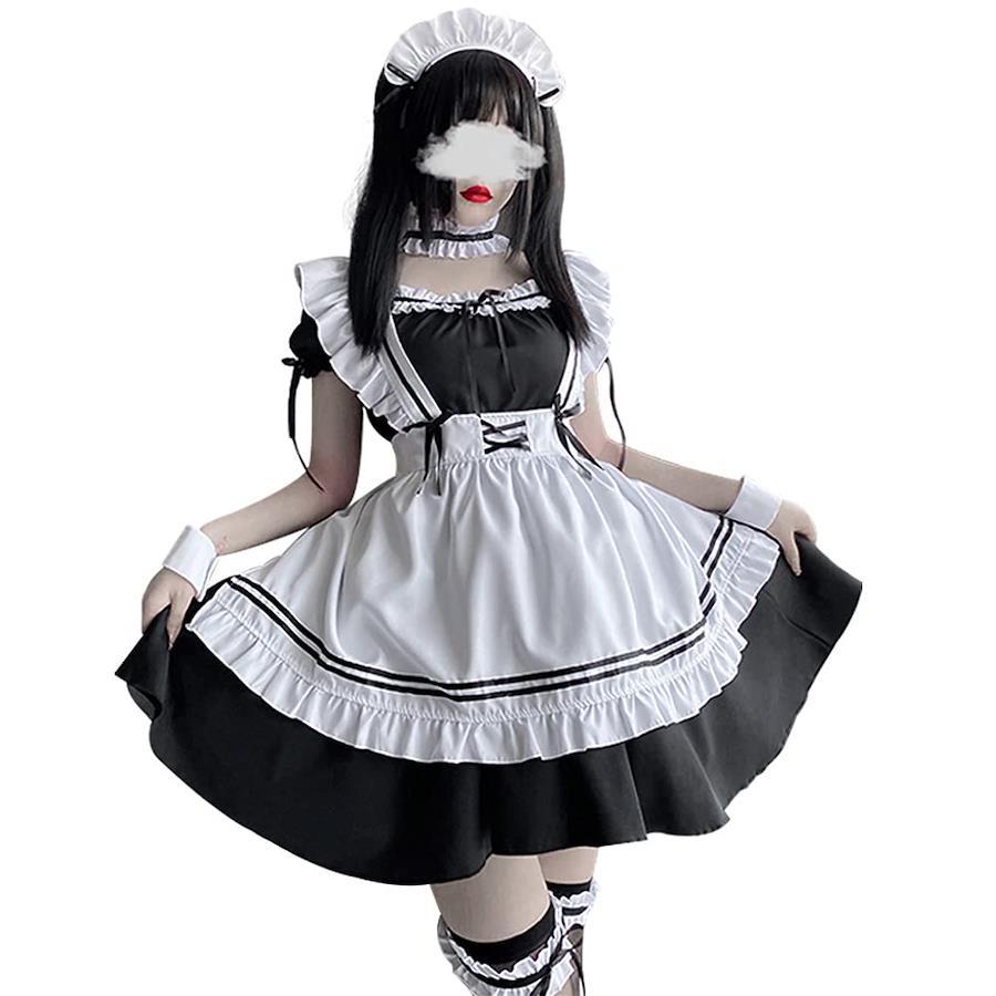 [YAISHN] メイド服 ゴスロリ 人気 ワンピース ハロウィン 仮装 レディース 可愛い ロリータ コスプレ 半袖 蝶結ぶ パーティー イベント 演出服 ストッキング付き カチューシャ (M)