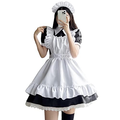 【セット内容】:カチューシャ、ワンピース、エプロン、ニーハイソックス。 【オシャレのメイドさん】コスプレ衣装として評価の高い人気の定番メイド服。ちょっぴりゴスロリテイストが加わった、リボン&フリルが沢山付いた可愛いデザインが特徴です♪エプロン無しの状態ですと普段でも着られるブラックワンピースとしてお使いいただけます。 【キュートでセクシー】ウエストの大きなリボンが可愛らしさを表現し、白黒のワンピース全体が「キュート」のキャリアです。 【優しい肌触り】高品質な素材を使用して、手で触ると質感やクオリティなどが良いです。おしゃれなコスプレ用メイド服服です。特別なデザインなので、かわいいの感じをテーマとして、特別の雰囲気を出ています。 【使用場合】ハロウィンのイベント、居酒屋、カラオケ店、学園祭、演劇、自撮り、誕生日、メイド喫茶店などの場合、ご利用いただけます。