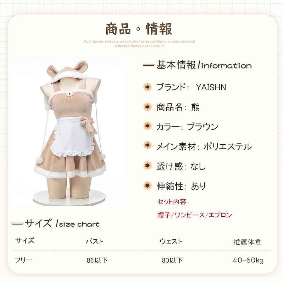 梱包サイズ?:?30.3x22.7x8cm;460gでの取り扱い開始日?:?2024/3/13メーカー?:?YAISHNASIN?:?B0CXXLSVXZ部門?:?レディース売れ筋ランキング:ドラッグストア-106,311位(ドラッグストアの売れ筋ランキングを見る)アダルト用コスチューム-1,041位カスタマーレビュー:4.55つ星のうち4.52個の評価vardpAcrHasRegisteredArcLinkClickAction;P.when('A','ready').execute(function(A){if(dpAcrHasRegisteredArcLinkClickAction!==true){dpAcrHasRegisteredArcLinkClickAction=true;A.declarative('acrLink-click-metrics','click',{"allowLinkDefault":true},function(event){if(window.ue){ue.count("acrLinkClickCount",(ue.count("acrLinkClickCount")||0)+1);}});}});P.when('A','cf').execute(function(A){A.declarative('acrStarsLink-click-metrics','click',{"allowLinkDefault":true},function(event){if(window.ue){ue.count("acrStarsLinkWithPopoverClickCount",(ue.count("acrStarsLinkWithPopoverClickCount")||0)+1);}});});??【メイン素材】:ポリエステル。??【セット内容】:帽子/ワンピース/エプロン。??【サイズ】:サイズはフリーサイズ(S-XL)となります、推薦体重40-60kgぐらいまでがお勧めです。??【魅惑の熊コスプレセット】熊メイドというだけでも好きな方にはたまらないフェチズムを感じられるアイテムですが、更に露出度が大きくUPすることでより魅力的な印象を演出してくれます。??【プレゼント】:ナイトウェアとして、コスチューム衣装として、クリスマスイブや、相手の誕生日、結婚記念日等に2人の時間をもっと熱くします。(#lf)(#lf)(#lf)商品購入前に、ストア紹介ページをご確認ください。