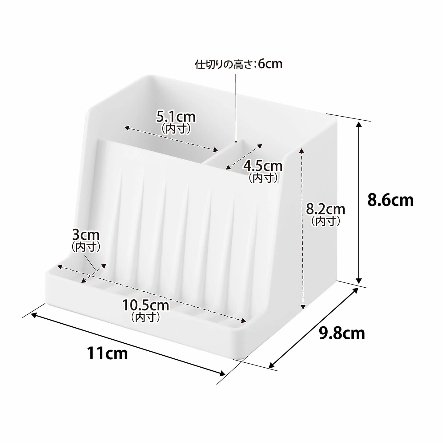 収納部1つあたり:約W5.1×D4.5×H8.2cm