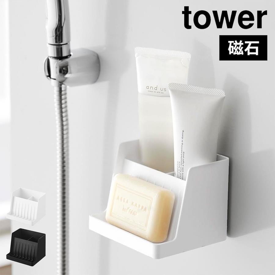 マグネット収納付きソープトレー 山崎実業 タワー tower 公式 ホワイト ブラック 10316 10317 収納 磁石 シンプル 石けんトレー 石けん置き 石鹸 水切り 浮かせる 浮く 浴室 洗面台 洗面所 置き ソープディッシュ 小物 歯ブラシ 歯磨き粉 チューブ 収納 バスラック トレイ おしゃれ お風呂収納 石鹸スタンド 歯ブラシスタンド 歯ブラシ立て 壁面収納 置き 石鹸皿 固形石鹸 水切り穴 清潔 整理 便利 洗濯ブラシ トレー ソープトレイ 白 黒 yamazaki 新生活 バースデー 誕生日 プレゼント プチ ミニ ギフト お祝い お返し 粗品 景品 送別会 イベント 母の日 父の日 敬老の日 山実 やまじつ ヤマジツ やまざきじつぎょう たわー towerシリーズ ブランド インテリアブランド Magnetic Soap Tray With Storage