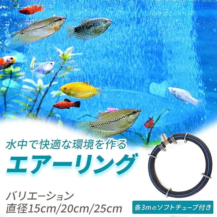 熱帯魚や淡水魚などの観賞用の魚や水草を快適な環境で飼育するために設計されたエアーバブルリングです 水槽内の酸素含有量を増やすエアレーション効果で、健康的な成長をサポートします エアー リングを水底に設置するだけで、水中の酸素含有量を向上させるので、魚たちに快適な環境を提供するだけでなく、細かいバブルを生み出すことにより水槽内を美しく彩ります