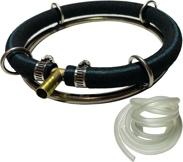 直径約15cm~25cmのリングはステンレス製の重りで安定し、水底に簡単に固定できます 真鍮製のホース接続口(直径約8mm)が付いており、付属のソフトチューブをご利用ください 別途ポンプが必要となります 気泡リングを水底に置いて、魚たちに健康な酸素を供給します 空気の出力は直径15cmで10~15L、直径20cmで15~20L、直径25cmで20~25Lを推奨しています
