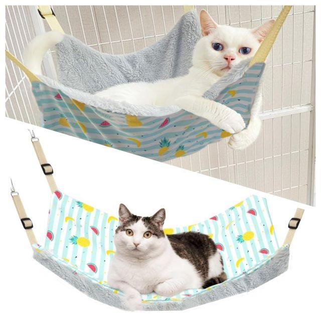 サイズ:中型◆商品名:YFFSFDCかわい猫ハンモック猫ケージ用キャット椅子大きい耐荷重10KGサイズL調整可能58cmx48cm、涼感ベッド日向ぼっこ遊び場通気性金具丈夫冬夏両用お手入れ簡単両面使用