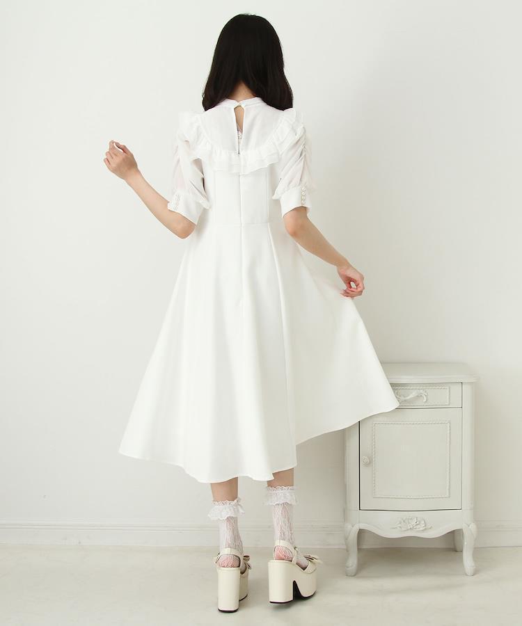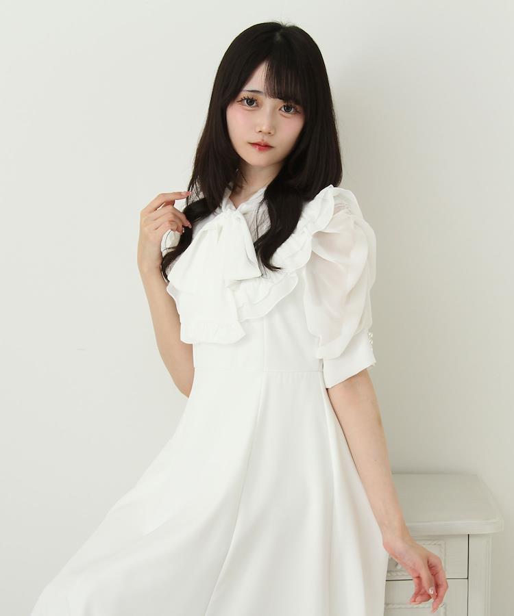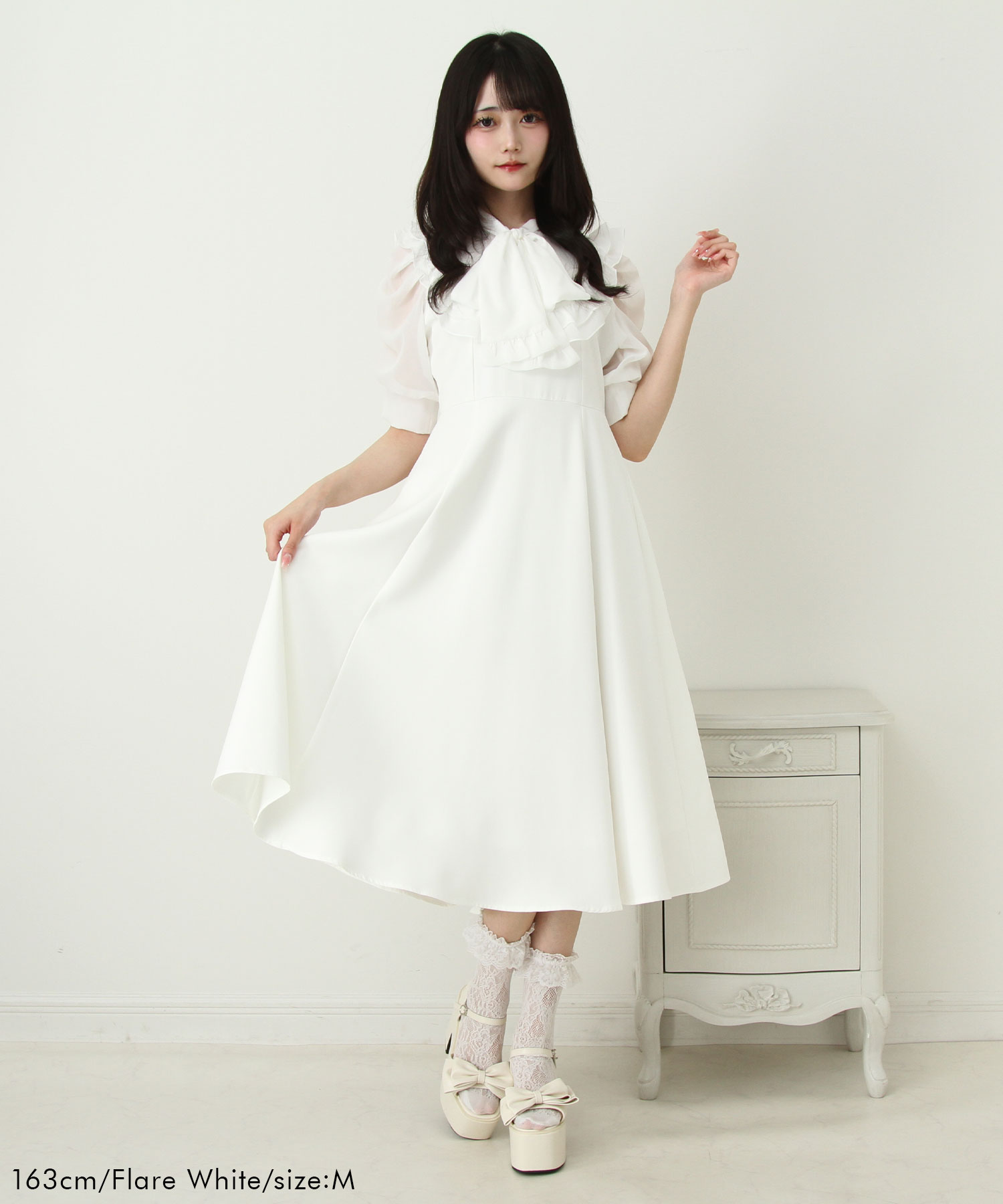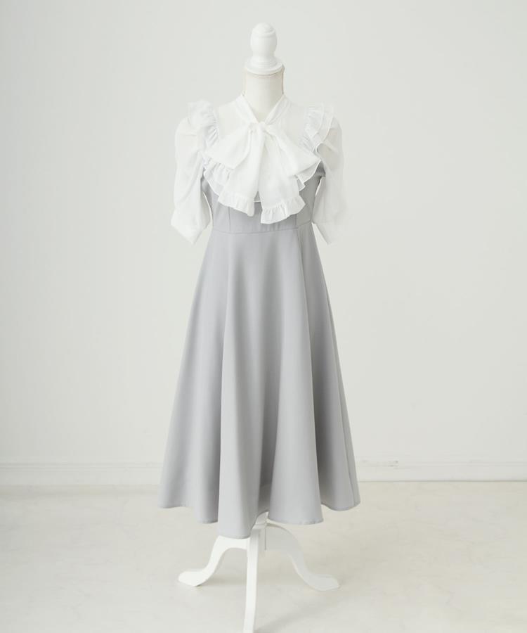 フレアとマーメイドデザインの選べるかわいいヨークデザインリボンワンピース。【デザイン】大きめボウタイリボンがかわいい上品なスカートデザインを選べるワンピースです。上身頃はシフォン生地を使用して透け感のある生地でかわいく、袖はパワショルデザイン。カフスにはパールがあしらわれています。スカートはフレアとマーメイドデザインの2種類をご用意。フレアはふわっと広がり、マーメイドはシルエットをより綺麗に見せてくれます。1枚で主役級のかわいさになれるワンピースです。【素材】しっかりとした素材です。本体裏地付き。ブルーグレーはさらりとした肌触りで、少し張り感のある素材感です。上身頃はシフォンなので若干の透け感があります。【コーディネート】これからの季節サンダルやパンプスを履いて涼し気に着こなすと上品でかわいいコーデに♪一枚でかわいくお好みのスタイルをお選び頂けるかわいいワンピースです。《透け感》なし 《生地の厚さ》普通 《裏地》あり 《伸縮性》なし《生産国》中国
